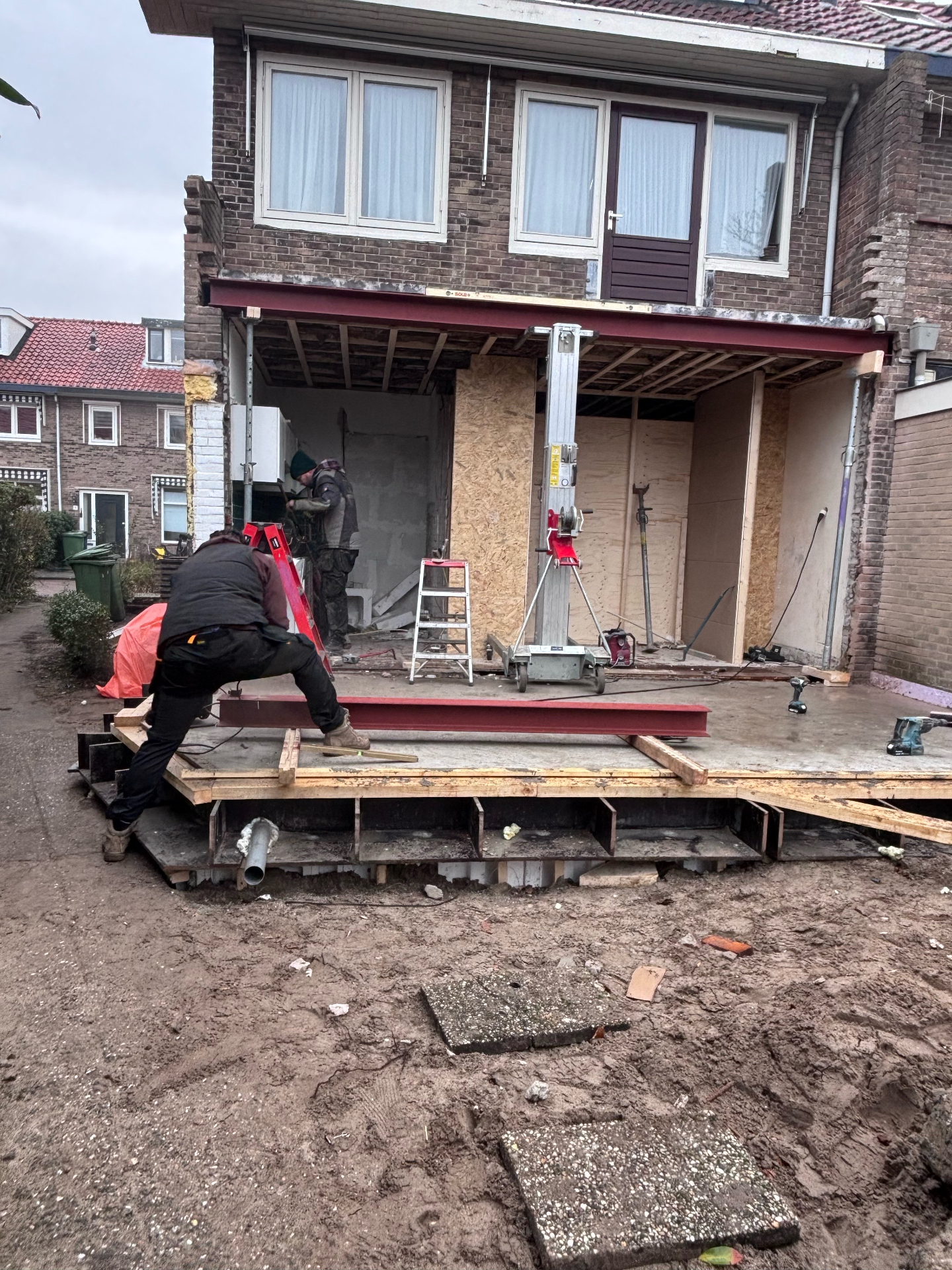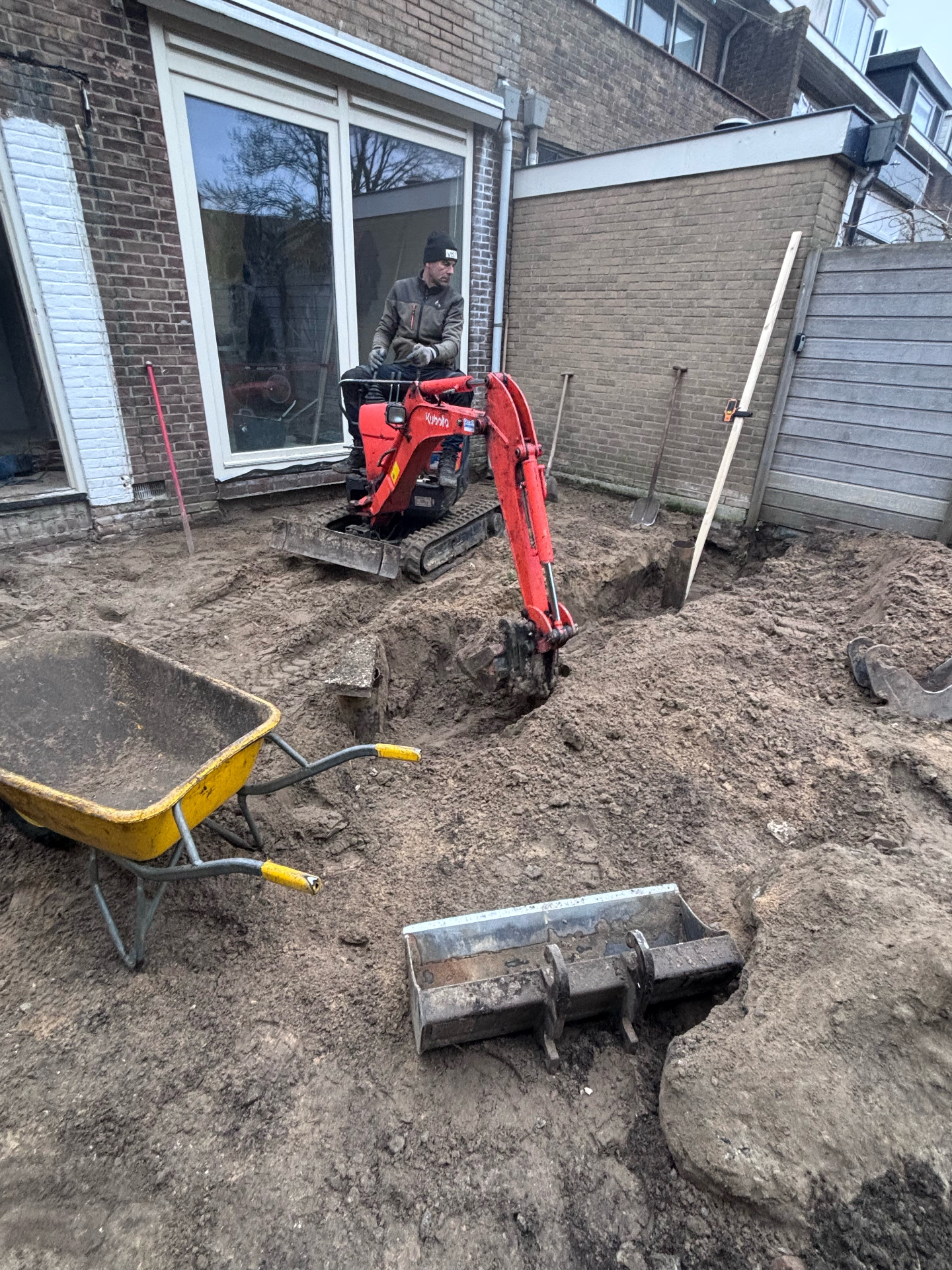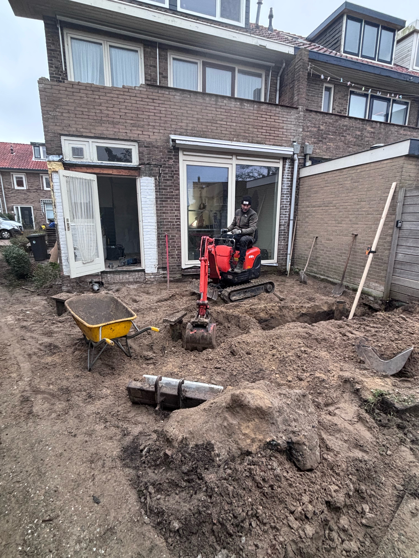 - Gebruik van compacte bouwmachines om efficiënt te werken binnen de beperkte ruimte rondom het huis.